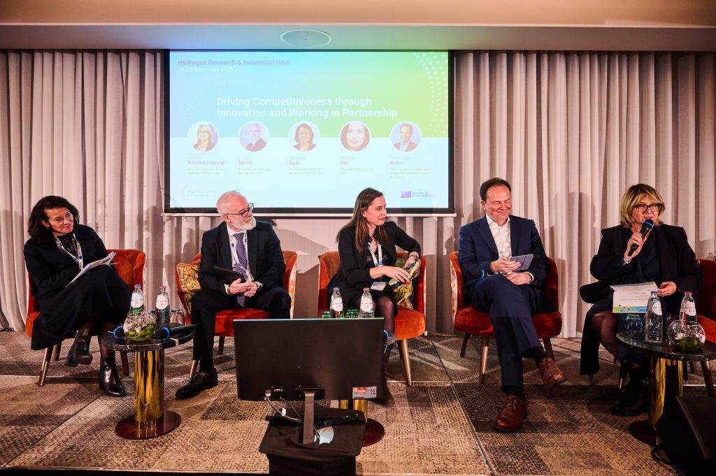 The European Hydrogen Research & Innovation Days 2025 provided a great opportunity to learn more about the Clean Hydrogen Partnership’s achievements over the past 17 years of existence. On 24 and 25 November, over 200 stakeholders gathered in Brussels to exchange on CHJU projects along the hydrogen value chain, as well as policy developments in light of the upcoming EU Multiannual Financial Framework. A particular focus was placed on regional collaboration through Hydrogen Valleys. During the closing session, “Driving Competitiveness through Innovation and Working in Partnership,” moderated by Valerie Bouillon-Delporte (Executive Director, Clean Hydrogen Partnership), four panellists – Beatrice Coda (Head of Unit, DG RTD, European Commission), Luigi Crema (President of Hydrogen Europe Research), Sebastian Boden (Vice President of Hydrogen Energy Partnerships Europe, Air Liquide), and Dr. Nadine May (Chair IWG Hydrogen) – reflected on the results of the conference, future challenges for the European leadership, and the relevance of hydrogen R&I for enhancing Europe’s competitiveness. Dr. May specifically referenced the potential for the new SET Plan governance to affect research efforts, saying, “The new SET Plan governance offers the opportunity to strengthen hydrogen R&I collaborations in Europe.”